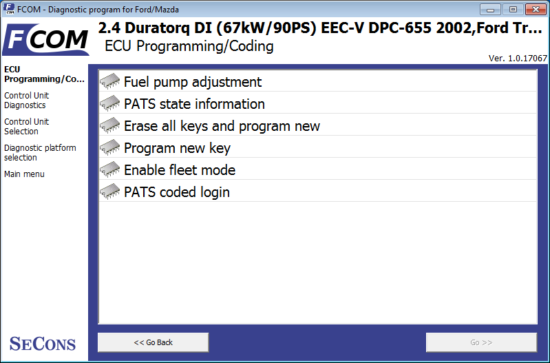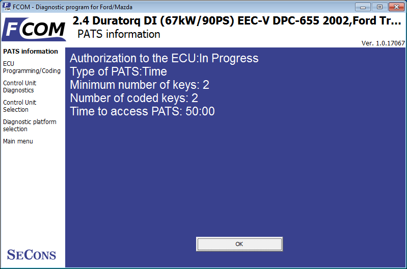 For køretøjer, der bruger flere ECU'er til PATS-system (f.eks. PCM og IPC, BCM RKE eller SCIL), skal ECU'er indeholde samme køretøjssikkerhedsdata. Til dette formål giver FCOM "PATS Pairing" funktion, som er tilgængelig kodningsmenu for ikke-PCM ECU (IPC, BCM, SCIL eller RKE). Funktionen er kun tilgængelig på kodede PATS.